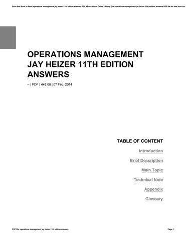 Download online Operations Management Jay Heizer 11th Edition Answers PDF BookBoon